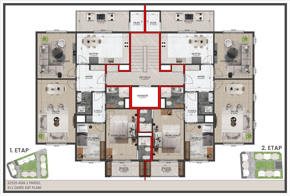 | 5 | Yatak Odası (Ebeveyn) | 14,16 m2 |
