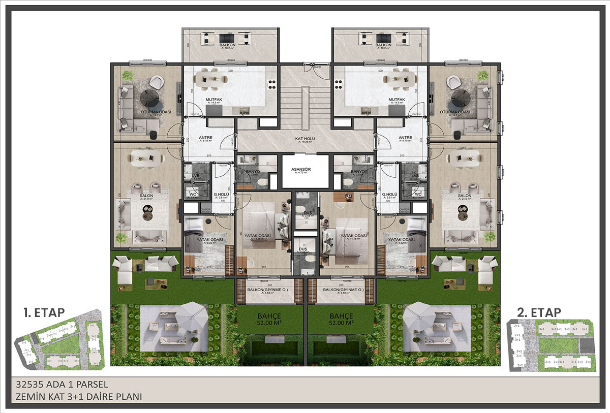 | 14 | Bahçe | 50 m2 |